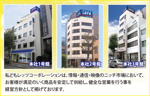 情報、通信、映像のニッチ市場においてお客様が満足いく商品を安定供給し健全な営業を行うこと。