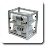一般のハンディカムや業務用のビデオカメラを2台搭載して利用して頂くカメラホルダです。設置時の上下ずれ補正の他、3D映像作成時にポイントとなる、両眼視差や輻輳角を2台同期して調節出来ます。
